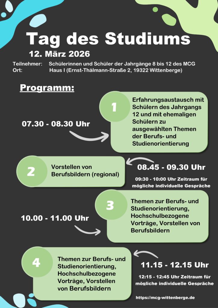 Der Tag des Studiums findet ca. einen Monat nach Beginn des zweiten Halbjahres statt (meist Anfang März).